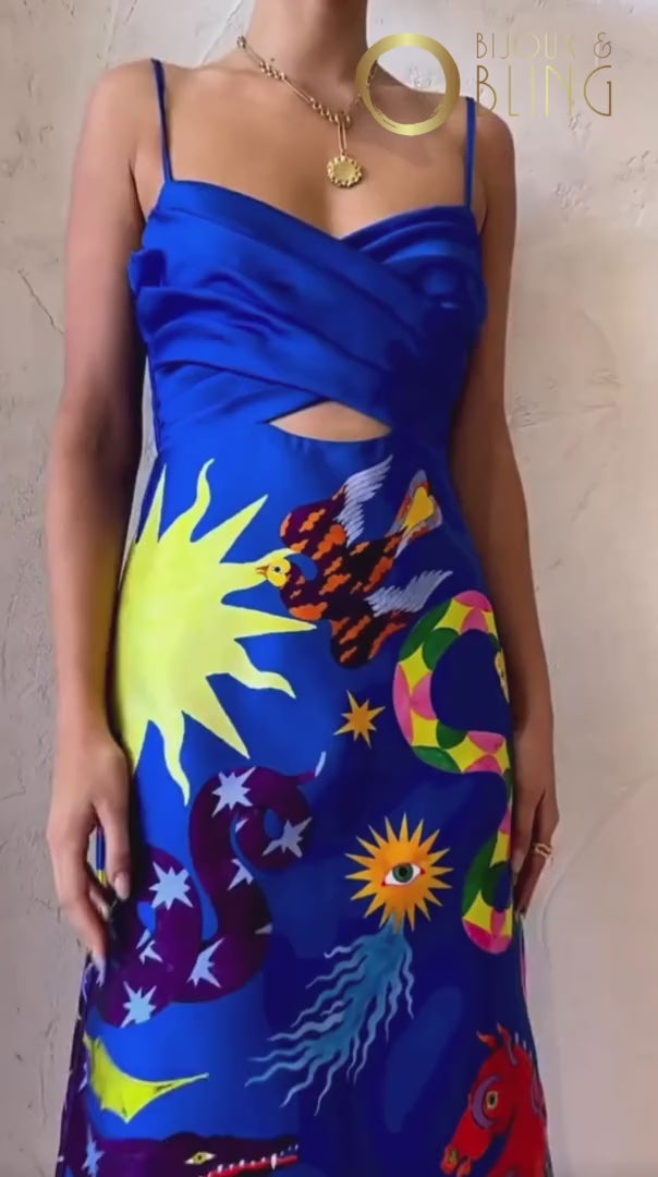 Knee Length one sided shoulder sequence dress (Frozen Blue)