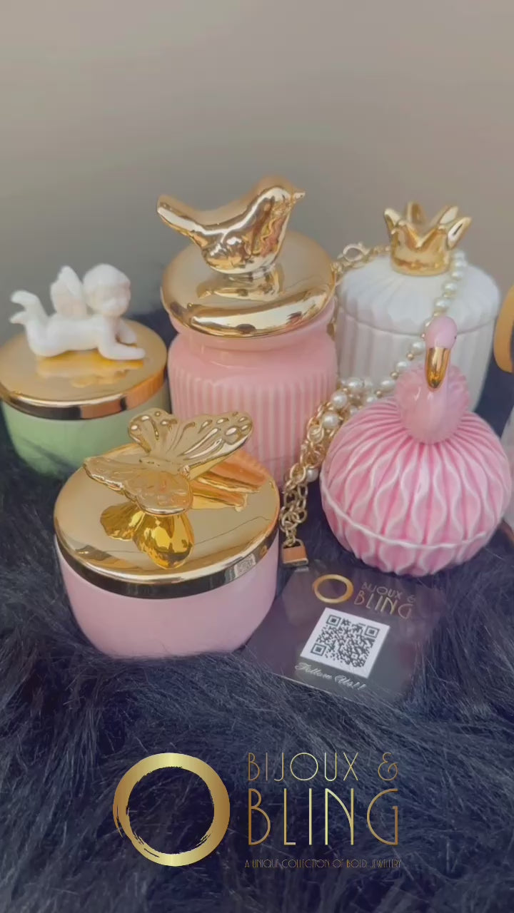Bird Trinket Box (Pink with Gold Bird Lid)
